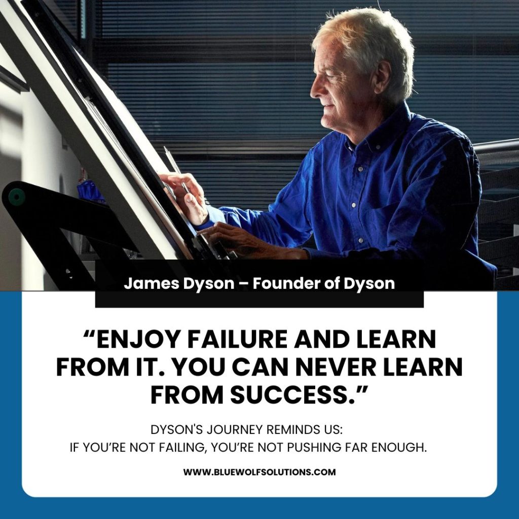 Failure became his R&D lab. Every failed prototype delivered insight. Each mistake refined the next attempt. In Dyson’s world, failure wasn’t the opposite of success — it was the path to it.